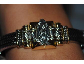 Basset Hound Bracelet featuring gold and silver with 5 inch round wrist measurement.