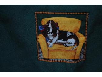 Apron with a Basset Hound sitting on a chair and saying " But I always sit in this chair before dinner" and set of 5 placemats with hound dog material.