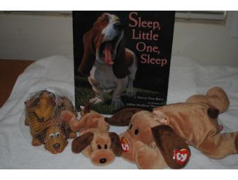 Basset Hound tub toys, stuffed Bassets and Sleep Little One Sleep book