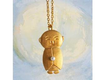 Jizo & Chibi: "Standing Jizo" Gold with Pearl Necklace