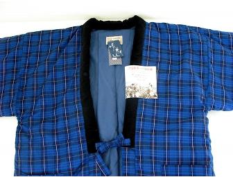 This "working person’s coat" is a traditional Japanese garment. "Nothing fancy. Simple. Functional." The jacket is padded with a thick wadding of cotton (70%) and polyester (30%).
