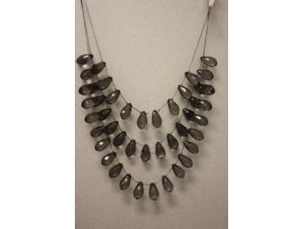 Haskell Necklace, Three Row Black Bead Necklace With Matching Teardrop Earrings