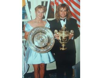Everyone appreciates a great love story, and the tale of Andre Agassi and Stefanie Graf is a romance that will go down in tennis history. Grab a piece of tennis history with this package of 3 photographs signed by Russ Adams, including the famous photo of Andre and Stefanie together with their 1992 Wimbledon trophies. Go home today with this tennis collector’s dream package and relish in the romance of sports!
