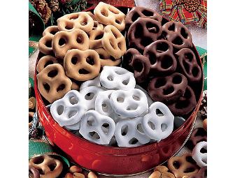 Nothing better than chocolate coveered petzels to ease the guilit of the holiday sweet tooth. Pretzels are low fat you know and they say chocolate is actually good for you! Tin of 48 pieces will be made fresh within 3 days.