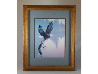 Beautifully framed eagle in flight. Wood frame.