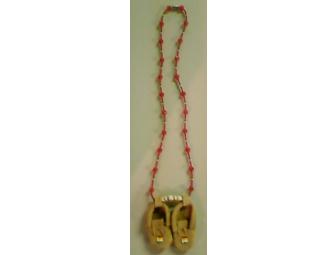 Personally designed miniature moccassin on a beaded necklace by Sgt Troy Johnson, one of our first Randlin Homes graduates. Troy has many talents and being artistic is one of them!