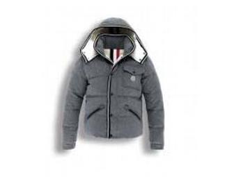 Zip up Moncler Jackets removable snap hood, with slick lining on the inside and outside wool lining on outside, zipper side pockets with drawstring at bottom.