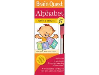 It's a brand-new "Brain Quest" format geared to give the earliest learners a leg up on writing, reading, and using numbers. "Brain Quest Write & Erase" sets. These are titles that feed a real need-helping pre-schoolers get ready for kindergarten. Featuring an attached pack of 40 large, write-on, wipe-off cards plus a dry-erase pen, each deck teaches a critical skill in a very practical way while at the same time being fun, entertaining, and informative-in the classic "Brain Quest" manner. Alphabet shows kids the right way to write their letters, both uppercase and lowercase, and also includes letter-identification and vocabulary-building quizzes on each page. "Brain Quest Write & Erase" sets are perfect for parents who want to help kids take learning in their own hands-and to instill that core message of "Brain Quest". It's Fun to Be Smart.