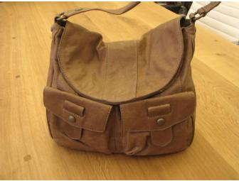 Enjoy this new beautiful ladies leather handbag with shoulder strap and front functional pockets. It is fully lined with one zipper and two other interior pockets. It is made of buttery, soft leather and has a fold over snap closure which is very secure.