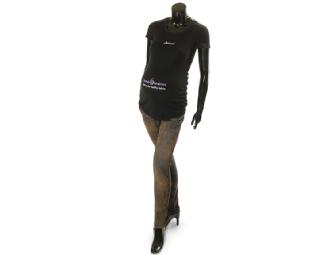 Jewel was given our AG Jeans Stilt Early & After Belly Signature Pocket Slim Leg Maternity Jeans (available at A Pea in the Pod) and embellished them into these one-of-a-kind jeans with paint and sparkles for that rugged western look!