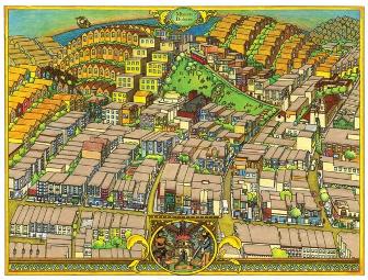 Remember Mission Dolores in San Francisco forever with this whimsical and colorful 15"x20" print of a painting by Adrian Covert.