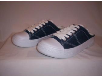 Brand New Blue and white half back shoe. This shoe is a kind of shoe that you slip on and go.