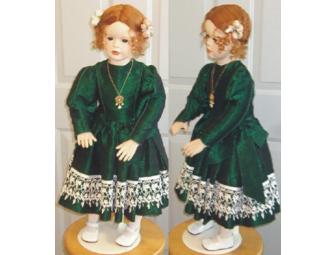 Christina 29" Hand painted all porcelain Doll. Beautiful cording detail on this lovely hand made emerald green silk dress.