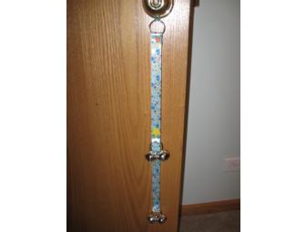 Approximately 24 inches long. Potty Bells are a great way for your dog to let you know he needs to go out! No more barking or scratching the door. Just hang the Potty Bells next to the door from a hook or use a rubber band or tie, to tie the Potty Bells to a doorknob. Easy to train your dogs to use these.