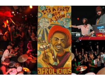 The hard-working, badass duo Pleasuremaker and Senor Oz throw down heavy latin funk, electro Brasilian, afro-beat, and tropi-beats that are guaranteed to make your hips shake.  This package includes 4 passes to any Afrolicious produced event in San Francsico, PLUS 4 copies of their lastest release, "A Dub For Mali" on ESL Music.