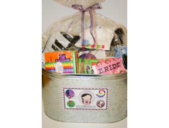 A nice selection of items from VioletGumDrop.com. THis galvanized tin includes 2 tank tops, 2 Bestie necklace sets, 2 Wish Upon a Star rings, 2 rain cuffs and a selection of baby washcloths.