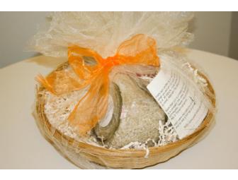 Up for auction here is a selection of at home spa products from Naturally Me. Basket includes Naturally Me Bath Soak which is a luxurious combination of oatmeal powder, four different kinds of sea salts, lavender, chamomile, peppermint and essential oils. Add to your bath for a silky, refreshing, all natural skin treat. Joyful Foot Scrub that's made from a blend of sea salts, herbs and a variety of essential oils. All Over Butter by Naturally Me is a blend of 4 exotic butters, coconut oil and a blend of essential oils. Best of all it contains no water. The All Over Butter can be used on your body as well as hair. A little goes a long way. Plus an exclusive candle.