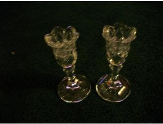 Set of Marquis Waterford Crystal candle holders produced for Amway. They stand approximately 6" high.
