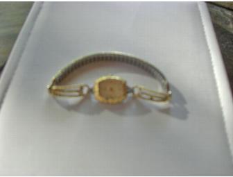 LADIES CARVELLE WATCH WITH YUKON GOLD AROUND FACE AND ON BAND