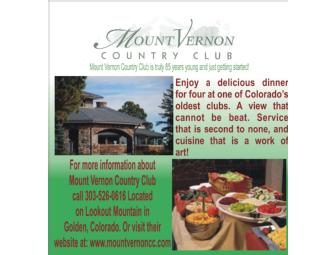Enjoy a full course meal, (nothing excluded) served by the wonderful staff at Mount Vernon Country Club...one of Colorado's oldest and highly respected country clubs.