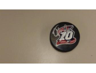 Columbus Blue Jackets hockey puck, autographed by #51 defenseman Fedor Tyutin. Includes letter of authenticity.