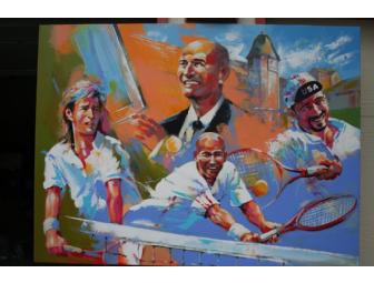 On July 9, 2011 Andre Agassi was presented the highest honor in tennis, induction into the International Tennis Hall of Fame. Malcolm Farley, renowned tennis and sports artist, has created a one-of-a-kind piece showcasing Agassi’s career. Bid and win this incredible piece of art great for any home, office, or tennis club!