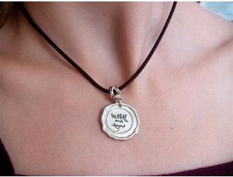 Part of the Thich Nhat Hanh "being peace" seals collection this seal is strung on a 27 inch plum colored rope to symbolize and celebrate Plum Village. Each plum cord comes with a sterling slider that allows the necklace to be adjusted in size.