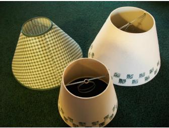 Three assorted lamp shades. The lower (larger) measurements are 12", 12" and 8".