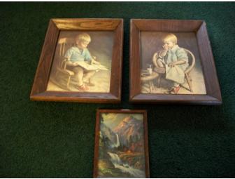 Three framed pictures. Boy and Girl pictures measure 8" by 10" and scenic picture measures 5" by 7".