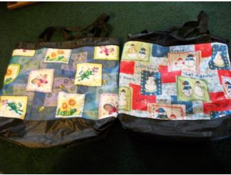Two shopping bags with vinyl lining that measure approximately 17" by 14".