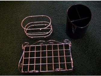 Two wire office desk accessories and one plastic holder.