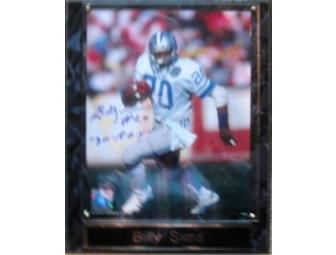 Detroit Lions Billy Sims Autographed Football Display. Comes with Certificate of Authenticity.