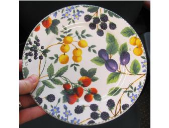 Brighten up your kitchen or dining area with this pretty set of decorator plates. Two of the 7" plates have a pretty fruit motif and the third has a teacup motif.
