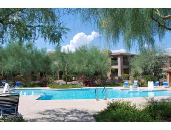 Enjoy sunny Scottsdale, AZ for a week in a first floor two bedroom, two bath condo. This unit is close to golfing, hiking, fine dining, and other points of interest. Or just enjoy lounging by the pool with a cool drink.