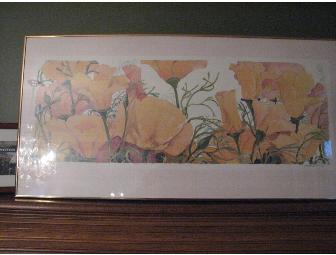 Framed original print - Dryden Gallery/New York City/September 1980 of "California Poppies" by Gary Bukovnik ---watercolor print