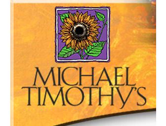 $100 gift certificate which can be used at any of the three great restaurants from award-winning Chef Michael Buckley: Michael Timothy's Urban Bistro, a wine and jazz bar on Main Street; Surf devoted to fresh, exquistely prepared seafood; and Buckley's Great Steaks which serves the finest, highest quality steaks.