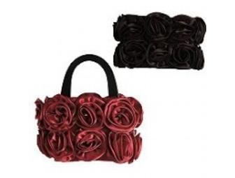 A rose by any other color. Like a beautiful handheld bouquet, this three-piece floral set blooms with satin rosettes on the exterior. When you want to switch up your look, simply snap one of the interchangeable slip covers into place for a coordinated pop of color. It's like getting two different in one! From Lori Greiner.
