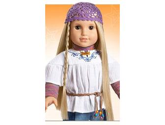 Brand new in box-18" Julie Doll Wearing a crinkle peasant blouse, a turtleneck, bell-bottomed jeans, underwear, platform sandels and a belt. Also included is a Meet Julie paperback book.