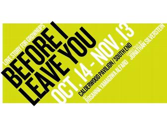 2 tickets good for a performance of Before I Leave You by Rosanna Yamagiwa Alfaro, which runs from October 14 to November 13. All performances at the Calderwood Pavilion in Boston's South End.