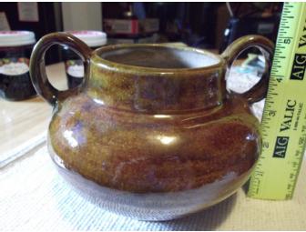 Medium amber brown vase with 2 ringed handles. Stoneware fired at cone 5.