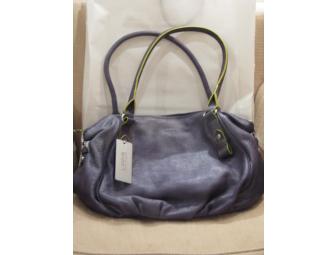 Bid on this dark grey, soft leather handbag with green piping by Lodis from Century in Provincetown.