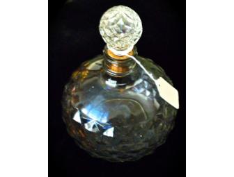 Faceted Clear Glass Decanter with Faceted Stopper. 10" x 6". Good Condition. Not Crystal.