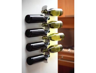 Inspired by the flow of liquid, this sculptural wine rack is finished in brushed stainless steel. Flow is wall mounted and will hold up to eight bottles using a minimum of space.
