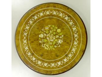 Handcrafted Lazy Susan, made of solid, seasoned mahogany with intricate inlay motifs using exotic woods from all over the world.