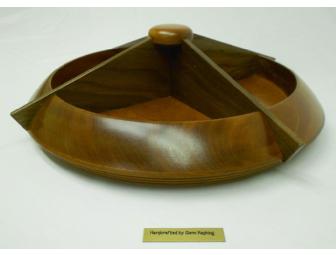 Handcrafted by Glenn Rapking, this lazy susan is 14" in diameter and has four divided sections. It is made of solid walnut.