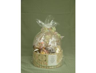 This decorated hat box is filled with wonderful homemade delights to tempt your tastebuds. In this reusable box are the following: loaves of White Bread, Cheese Bread, Pumpkin Bread, Strawberry Bread, and Hawaiian Bread. Also there are Lemon Cookies, Glazed Oatmeal Raisin Cookies, Thumbprint Cookies, and Macadamia Nut Blondies. To further entice you are Cinnamon Rolls, Morning Glory Muffins, and Caramelized Pecans. Nothing is better than homemade!