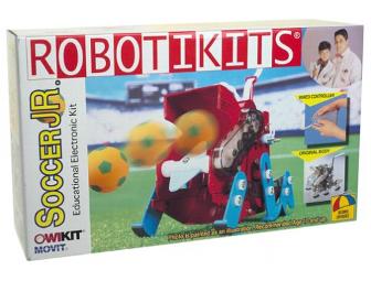 Once you've built the robot, it can play soccer and kickball and can play like an action figure. It kicks, defends positions, moves backwards and forwards, turns right and left, and can go round in a circle. Control the robot with a remote control unit. You'll be amazed at how fast it goes. [Age 14 and up]