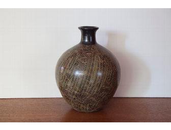 Pottery with indigenous designs. Made in the potters' village of San Juan de Oriente. Signed by the potter. Measures 8" in diameter and 9.5" tall.