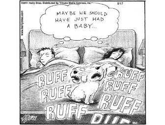 Signed print of Harry Bliss cartoon: "Maybe we should have just had a baby...". Print measures 11" x 11".
