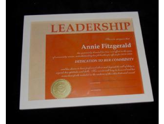 Heroes (2006-2010) - An original screen used and production made framed Leadership Award for Annie Fitzgerald. 9.5" x 12.5"